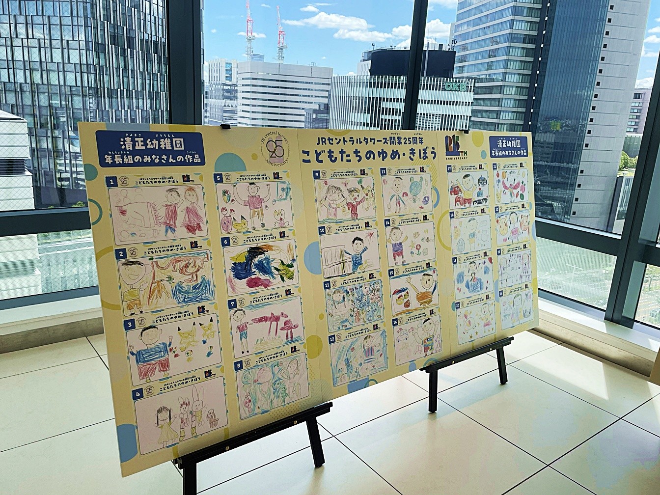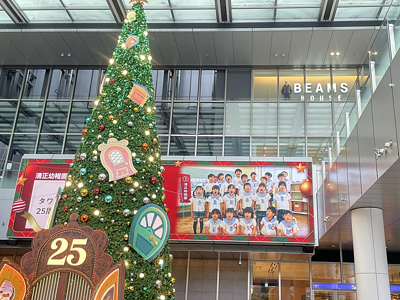 ブログ 01Dec2025 JRセントラルタワーズ25周年記念企画 名古屋駅のJRセントラルタワーズの開業25周年の記念企画に参加しました。夏には年長組の子どもたちが描いた絵を展示していただき、12月にはメッセージ動画が大型ビジョンで放映されました。 ブログ いちご動物園 「ピヨピヨひろば」「園庭開放」について 関連記事一覧 春の遠足 新しい遊具が来ました お別れ遠足 きよまさまつり 卒業式 消防署見学