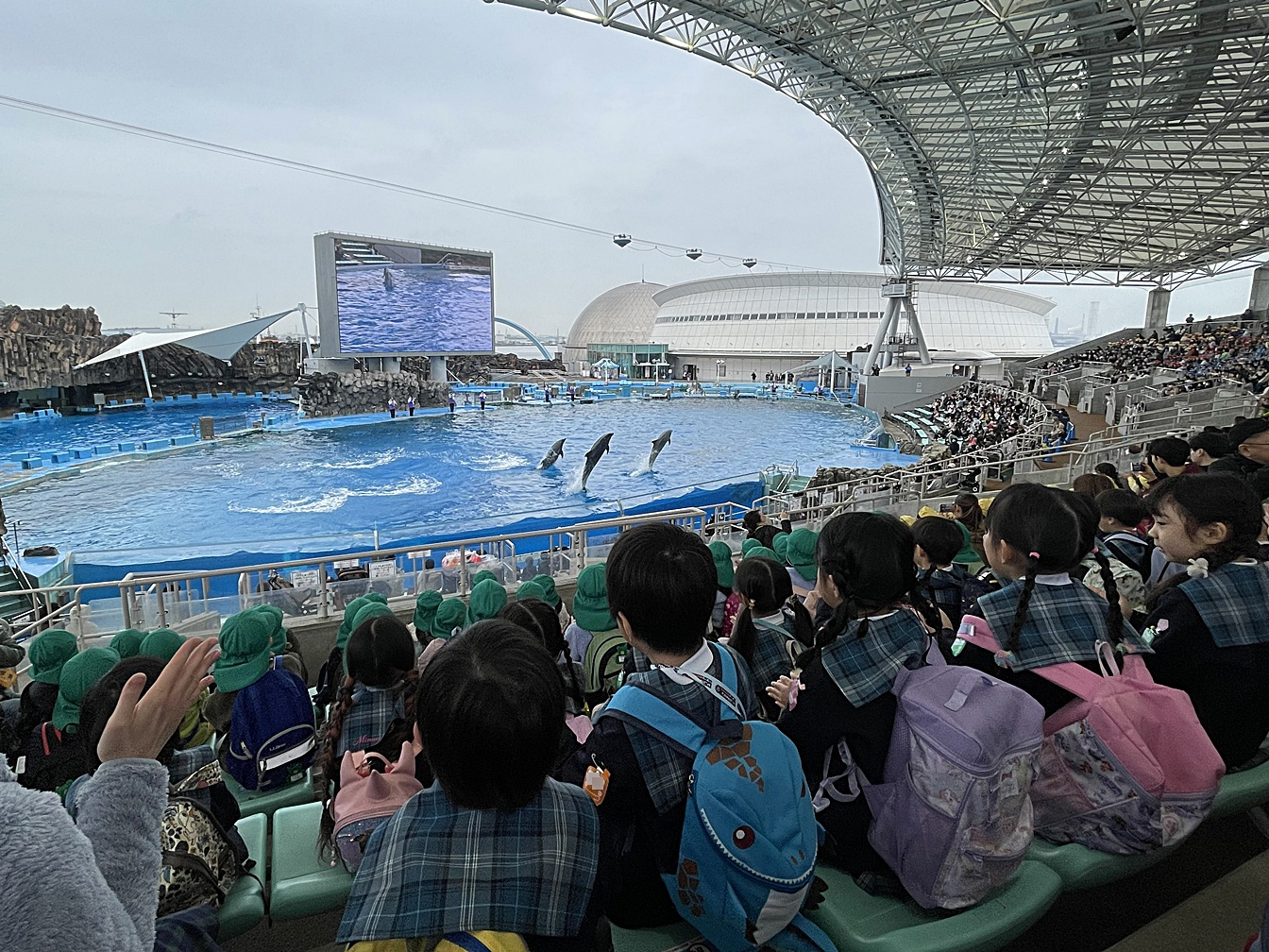 ブログ 25Feb2026 お別れ遠足 年長組がお別れ遠足で名古屋港水族館へ行きました。イルカショーやたくさんの魚を見て、楽しい時間を過ごしました。ジャンプするイルカはとてもかっこよかったですね。思い出がたくさんできた、楽しい一日になりました。 ブログ, 行事 保育参観 おはなし隊&CBCアナウンサー絵本ライブ 関連記事一覧 成道会こども音楽会 小学校交流会 作品展 おはなし隊&CBCアナウンサー絵本ライブ 春の遠足 おやこで遊ぼう会
