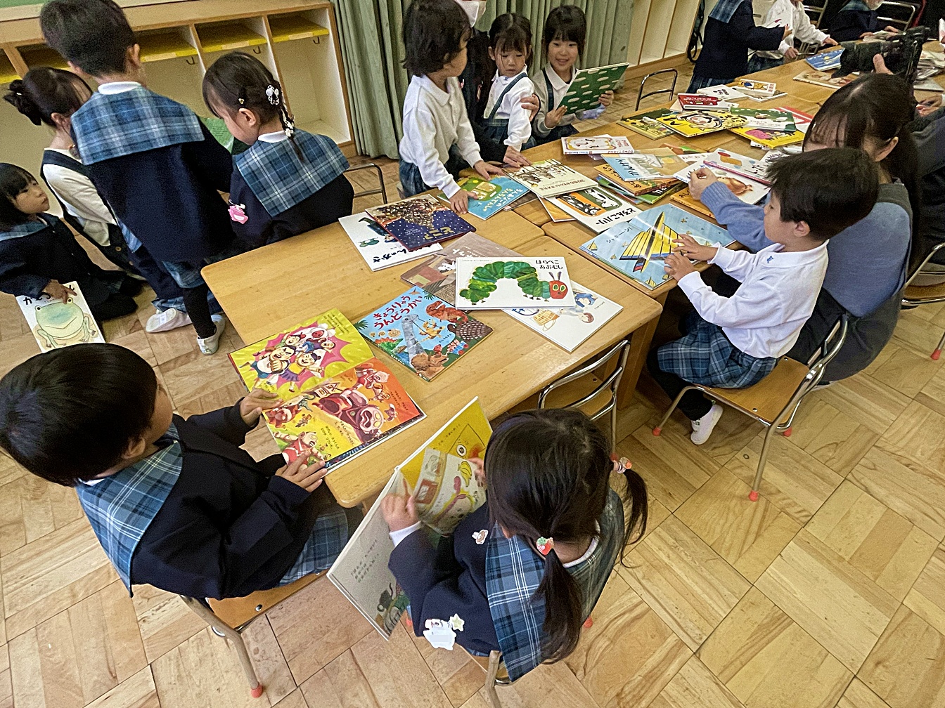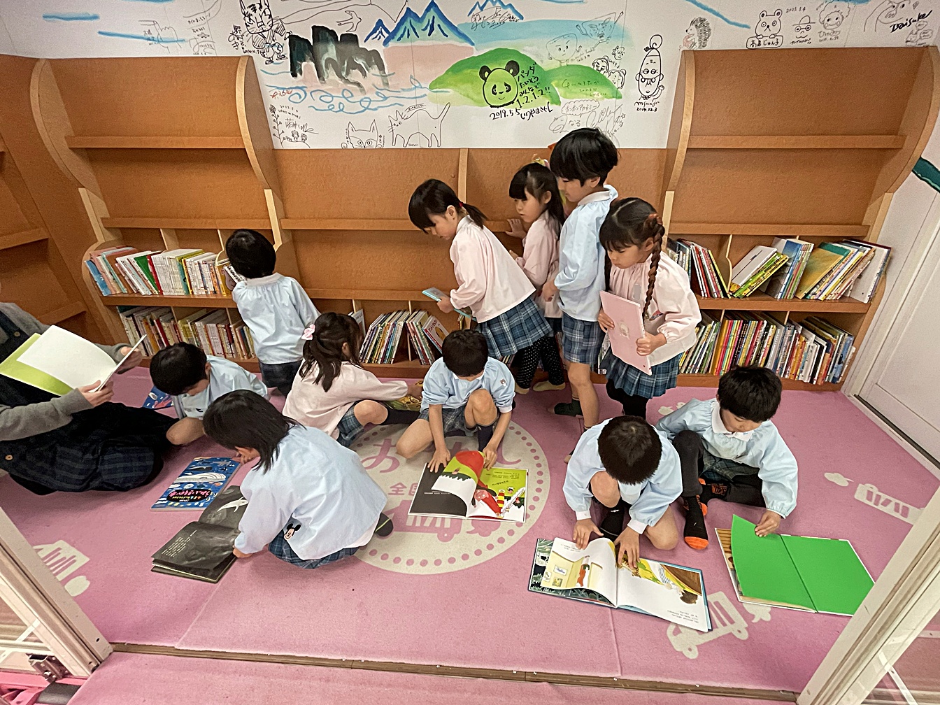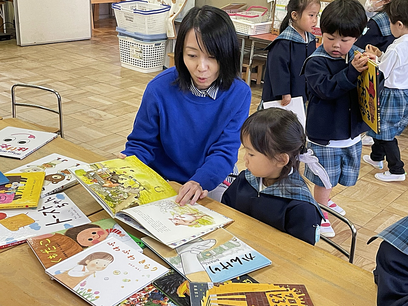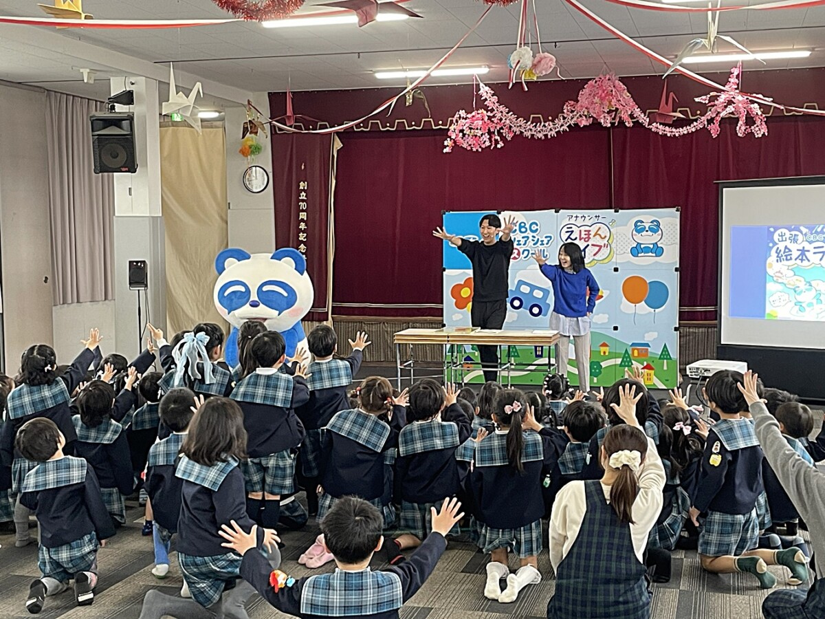 講談社の「本とあそぼう 全国訪問おはなし隊」と「CBCアナウンサー 出張絵本ライブ」のコラボイベントを行いました。園庭にはキャラバンカーがやって来ました。なんと、車の中が図書館になっています!最初に3階ホールにて、おはなし隊の隊長さんとCBCアナウンサーさんの絵本の読み聞かせを楽しみました。CBCキャラクターのシェアシェアも遊びに来てくれてみんな大喜び!その後、遊戯室では自分で好きな絵本を選びました。子どもたちはさまざまな絵本に目を輝かせながら、思い思いに楽しんでいました。楽しいお話に触れ、ワクワクしたひとときになりましたね。ありがとうございました。