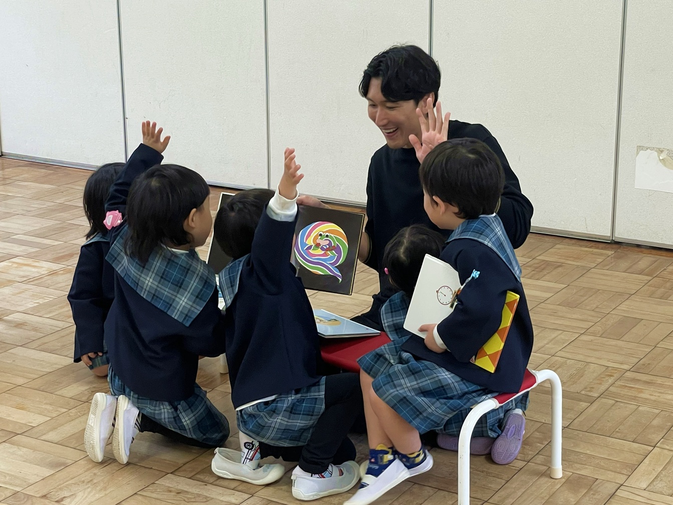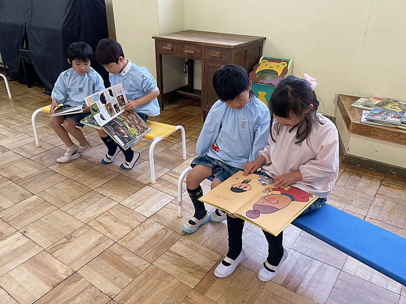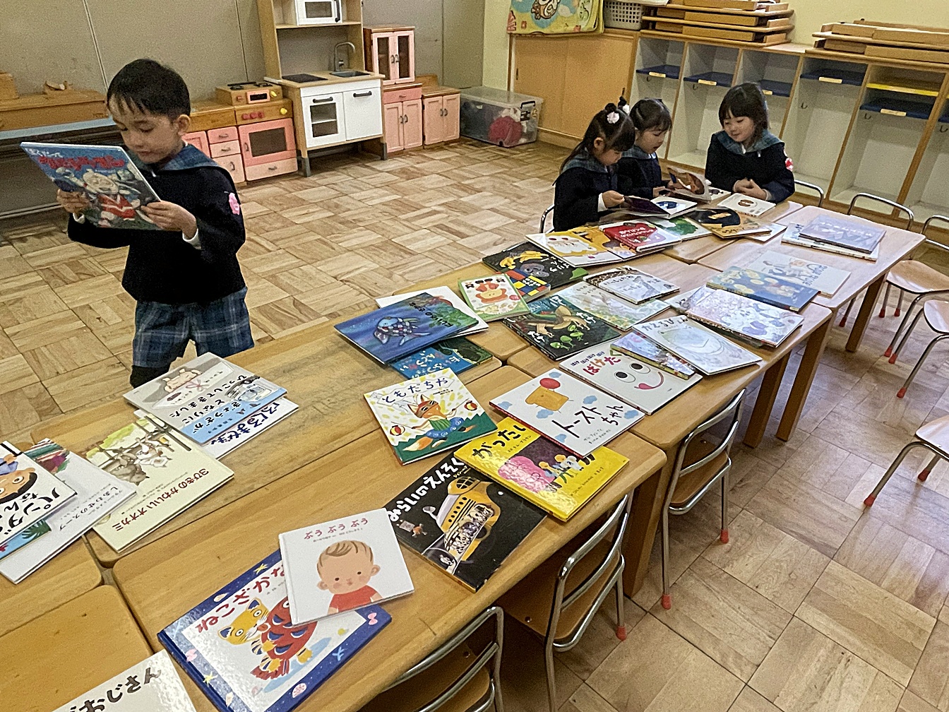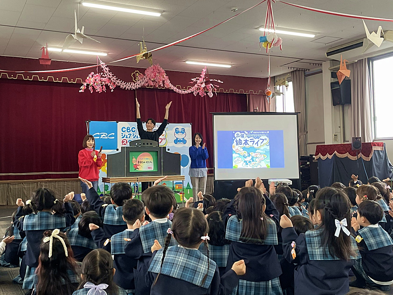 講談社の「本とあそぼう 全国訪問おはなし隊」と「CBCアナウンサー 出張絵本ライブ」のコラボイベントを行いました。園庭にはキャラバンカーがやって来ました。なんと、車の中が図書館になっています!最初に3階ホールにて、おはなし隊の隊長さんとCBCアナウンサーさんの絵本の読み聞かせを楽しみました。CBCキャラクターのシェアシェアも遊びに来てくれてみんな大喜び!その後、遊戯室では自分で好きな絵本を選びました。子どもたちはさまざまな絵本に目を輝かせながら、思い思いに楽しんでいました。楽しいお話に触れ、ワクワクしたひとときになりましたね。ありがとうございました。