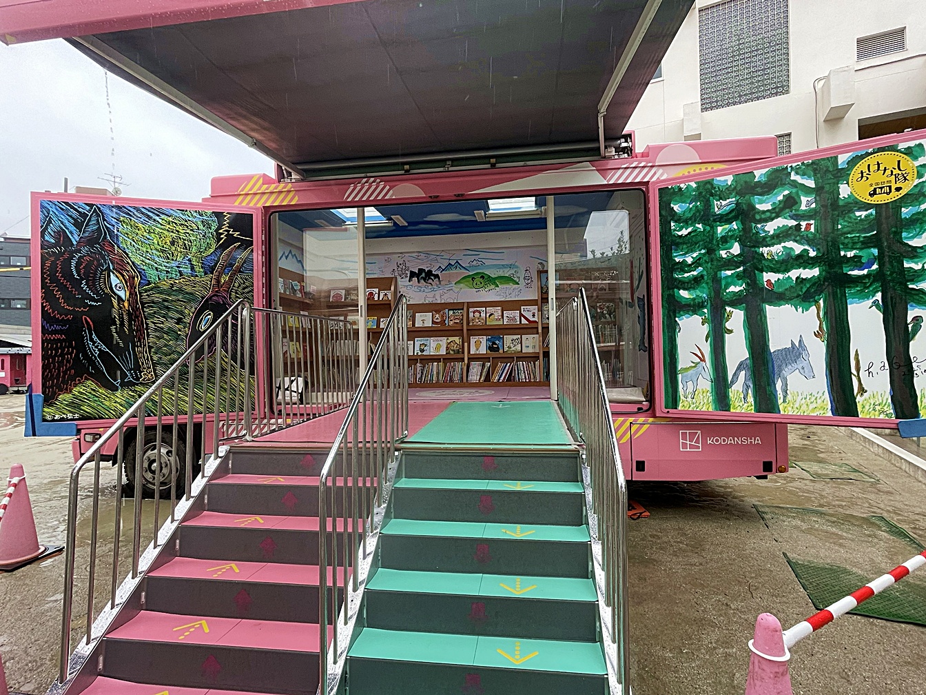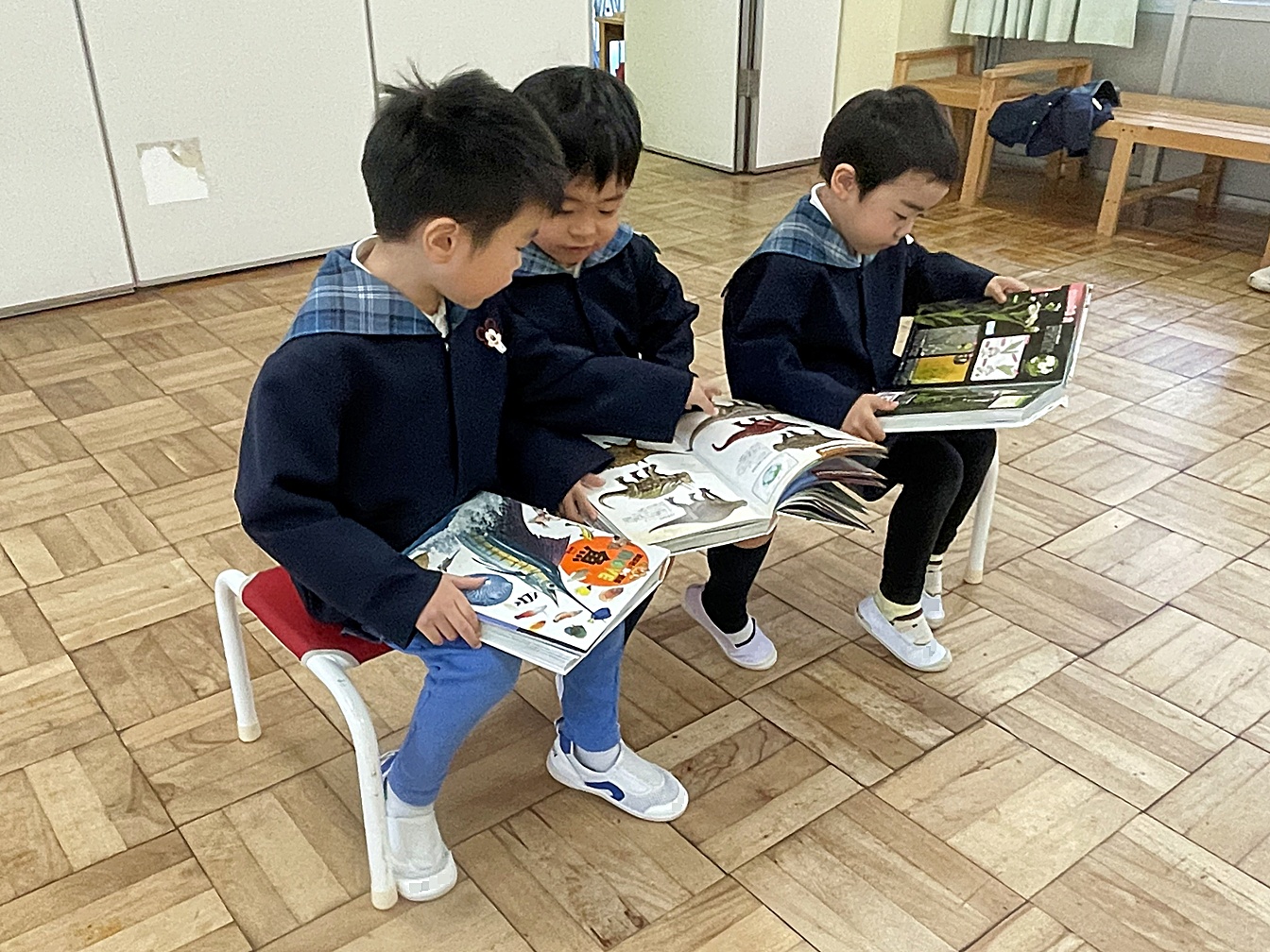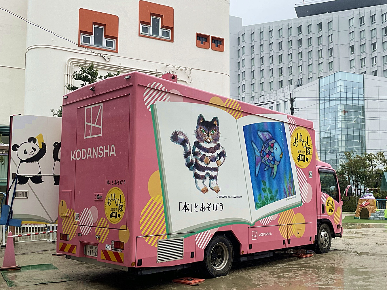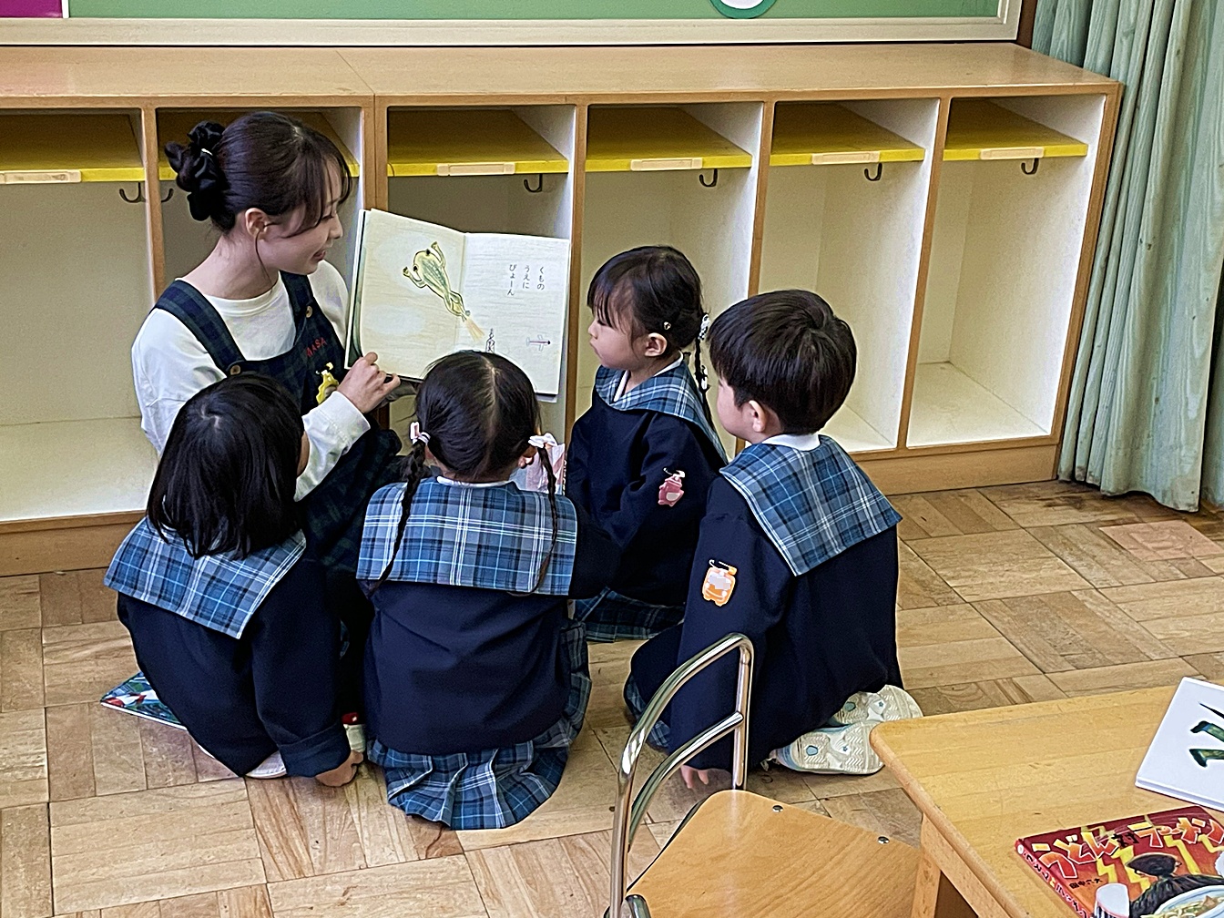 講談社の「本とあそぼう 全国訪問おはなし隊」と「CBCアナウンサー 出張絵本ライブ」のコラボイベントを行いました。園庭にはキャラバンカーがやって来ました。なんと、車の中が図書館になっています!最初に3階ホールにて、おはなし隊の隊長さんとCBCアナウンサーさんの絵本の読み聞かせを楽しみました。CBCキャラクターのシェアシェアも遊びに来てくれてみんな大喜び!その後、遊戯室では自分で好きな絵本を選びました。子どもたちはさまざまな絵本に目を輝かせながら、思い思いに楽しんでいました。楽しいお話に触れ、ワクワクしたひとときになりましたね。ありがとうございました。